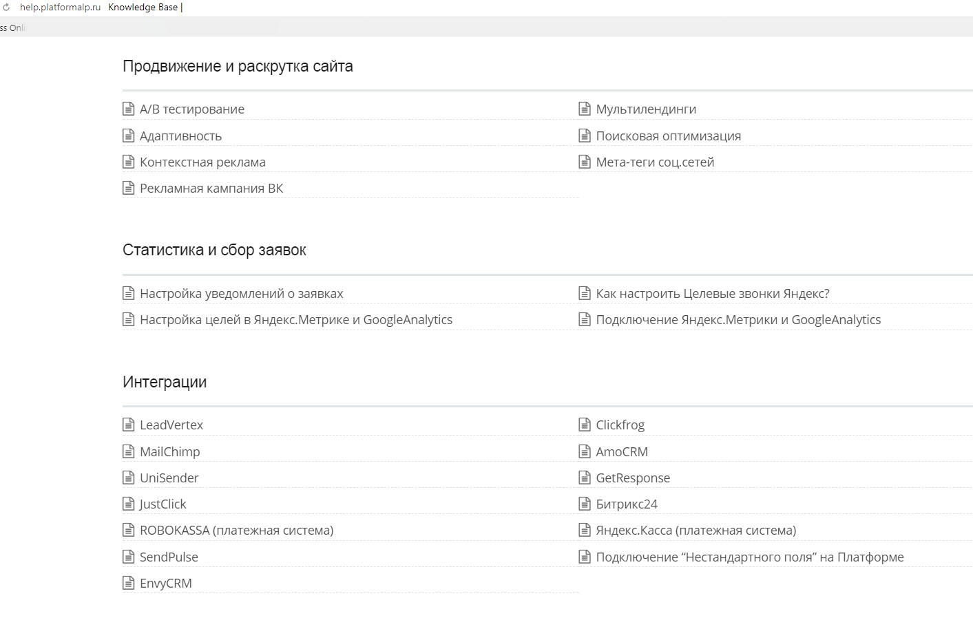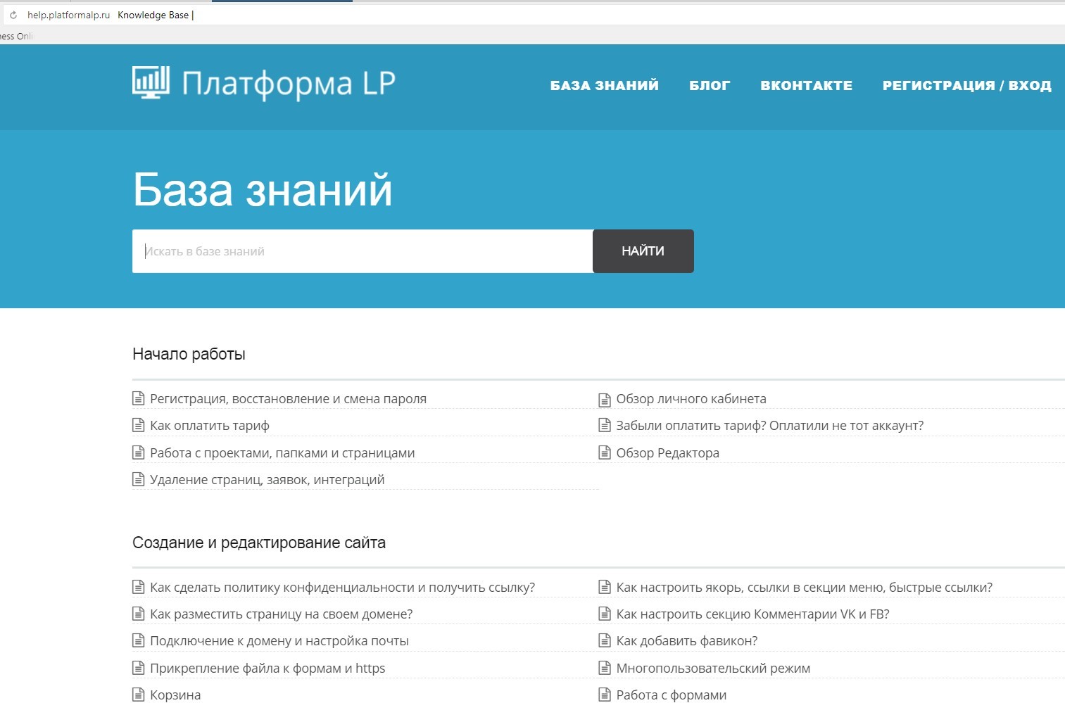 база знаний Платформы ЛП